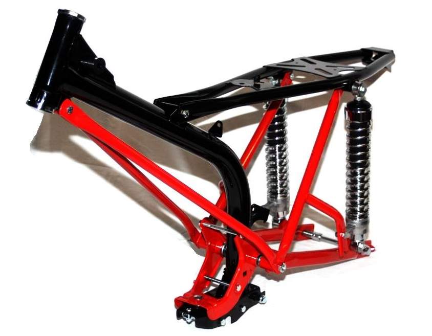 - Rahmenunterzug mit Obergurtstreben, Motorlager und Schwinge rot pulverbeschichtet