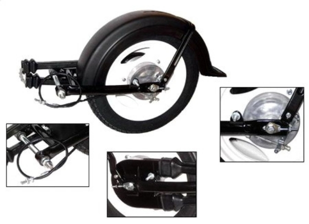 - Hinterrad Schwinge mit Scheibenrad weiß und Reifen Heidenau K38