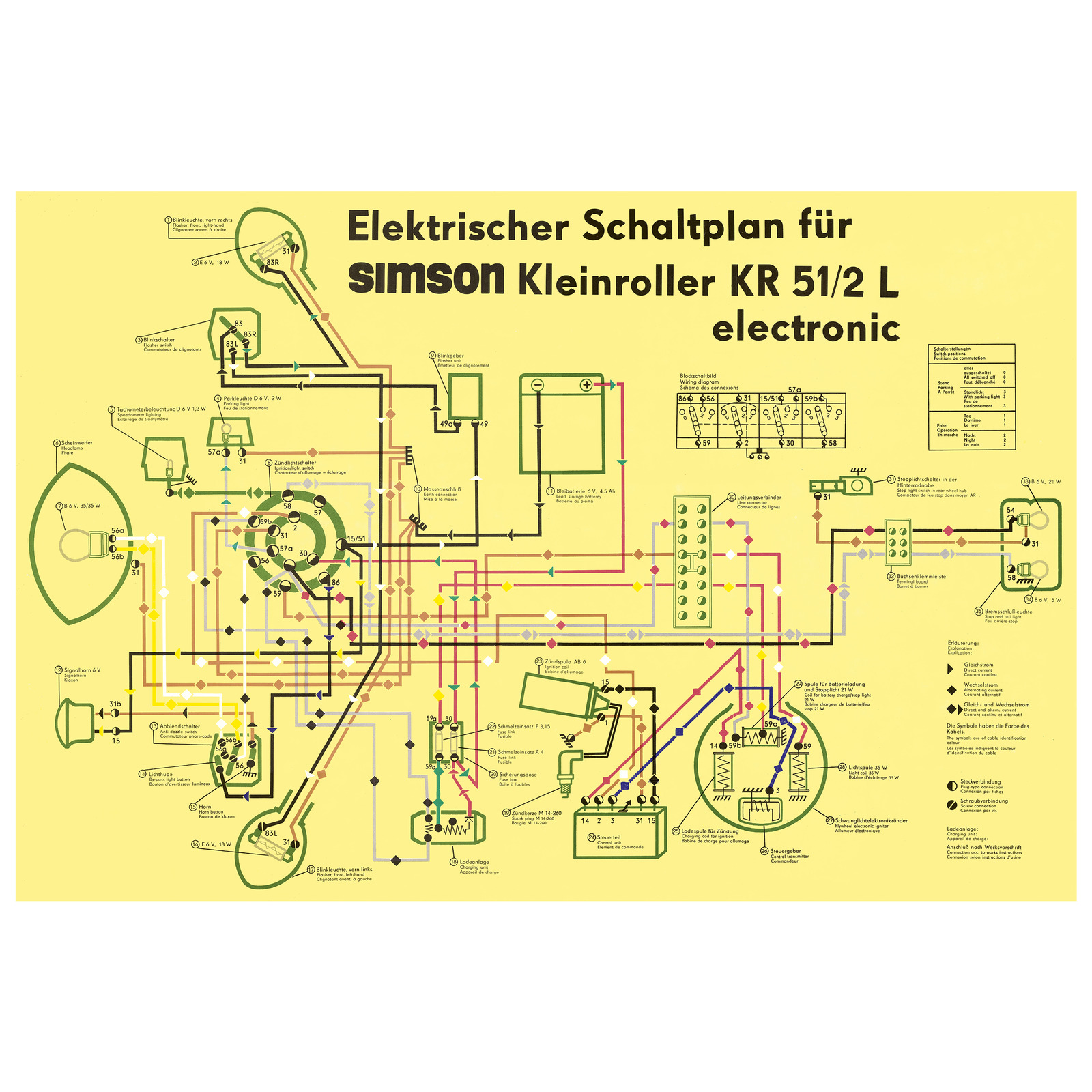 Großformatiger, farbiger Schaltplan für Simson KR51/2L